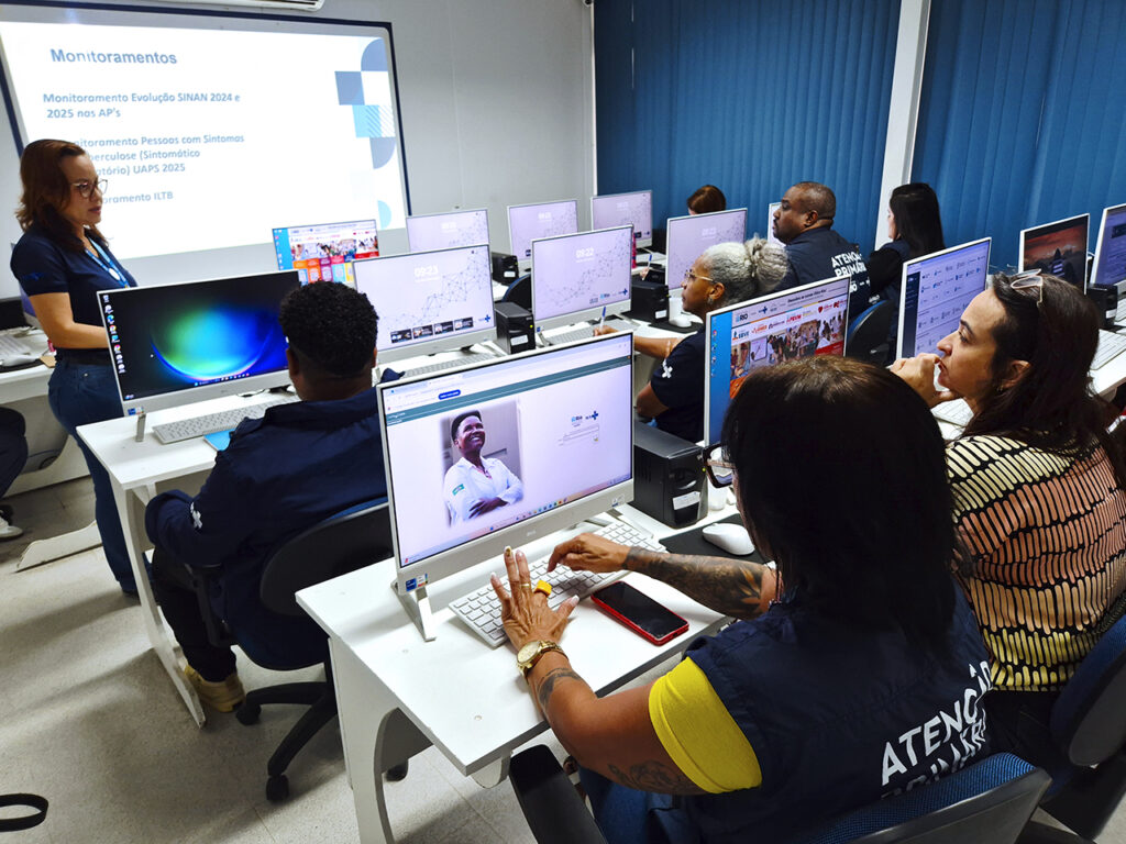 Na manhã de 23 de setembro de 2025, a Sala de Informática da OTICS-RIO Campo Grande recebeu mais uma edição da oficina “Qualifica TB – Linha de Cuidados Tuberculose”, organizada pela equipe responsável por essa linha de cuidados na Área Programática 5.2. A atividade, conduzida por Regiane Regis e Vanilda Almeida, teve como objetivo aprimorar a qualidade das informações registradas nos sistemas SINAN, GAL e IL-TB, sendo voltada para os gestores das unidades de saúde da região.
