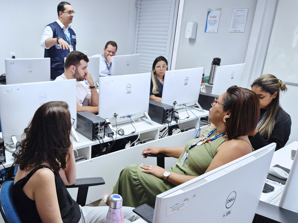 Na manhã de 2 de outubro de 2025, a Sala de Informática da OTICS-RIO Campo Grande recebeu mais uma edição da oficina “Qualifica TB – Linha de Cuidados Tuberculose”, organizada pela equipe responsável por essa linha de cuidados na Área Programática 5.2. A atividade, conduzida por Regiane Regis e Vanilda Almeida, teve como objetivo aprimorar a qualidade das informações registradas nos sistemas SINAN, GAL e IL-TB, sendo direcionada aos RTs médicos das unidades de saúde da região.