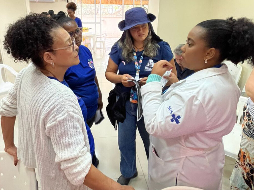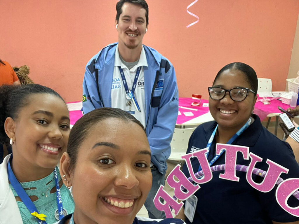 A ação foi conduzida por uma equipe multiprofissional da unidade, composta pelas enfermeiras Camila Almeida e Sara Marques, a educadora física Cibele Rodrigues, a técnica de enfermagem Suelen Santos, os agentes comunitários de saúde Larissa Caetano e Joseph Costa, a auxiliar de saúde bucal Nathália Ferreira e a psicóloga Amanda, do ambulatório.