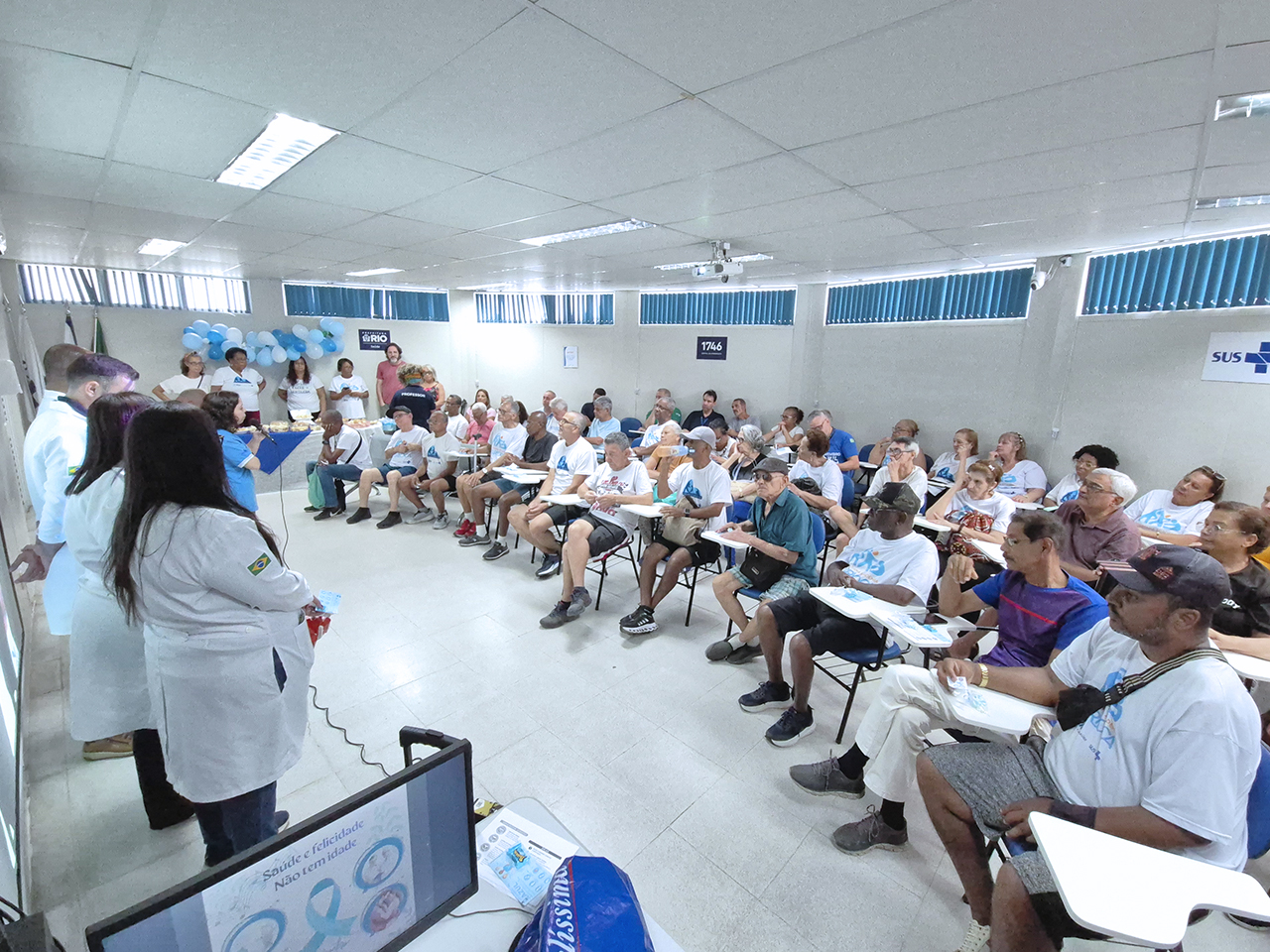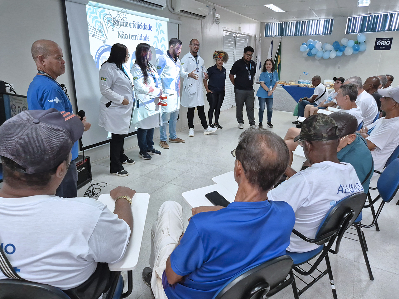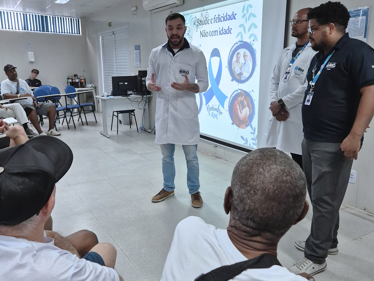 Na manhã do dia 18 de novembro de 2025, o auditório da OTICS Campo Grande recebeu a atividade “Felicidade e Saúde não Têm Idade”, iniciativa voltada ao público masculino e promovida pelos profissionais da Clínica da Família Medalhista Olímpico Arthur Zanetti. O encontro buscou sensibilizar os homens sobre a importância do autocuidado e da realização regular de exames e consultas preventivas, reforçando a necessidade de uma atenção contínua à saúde em todas as fases da vida.