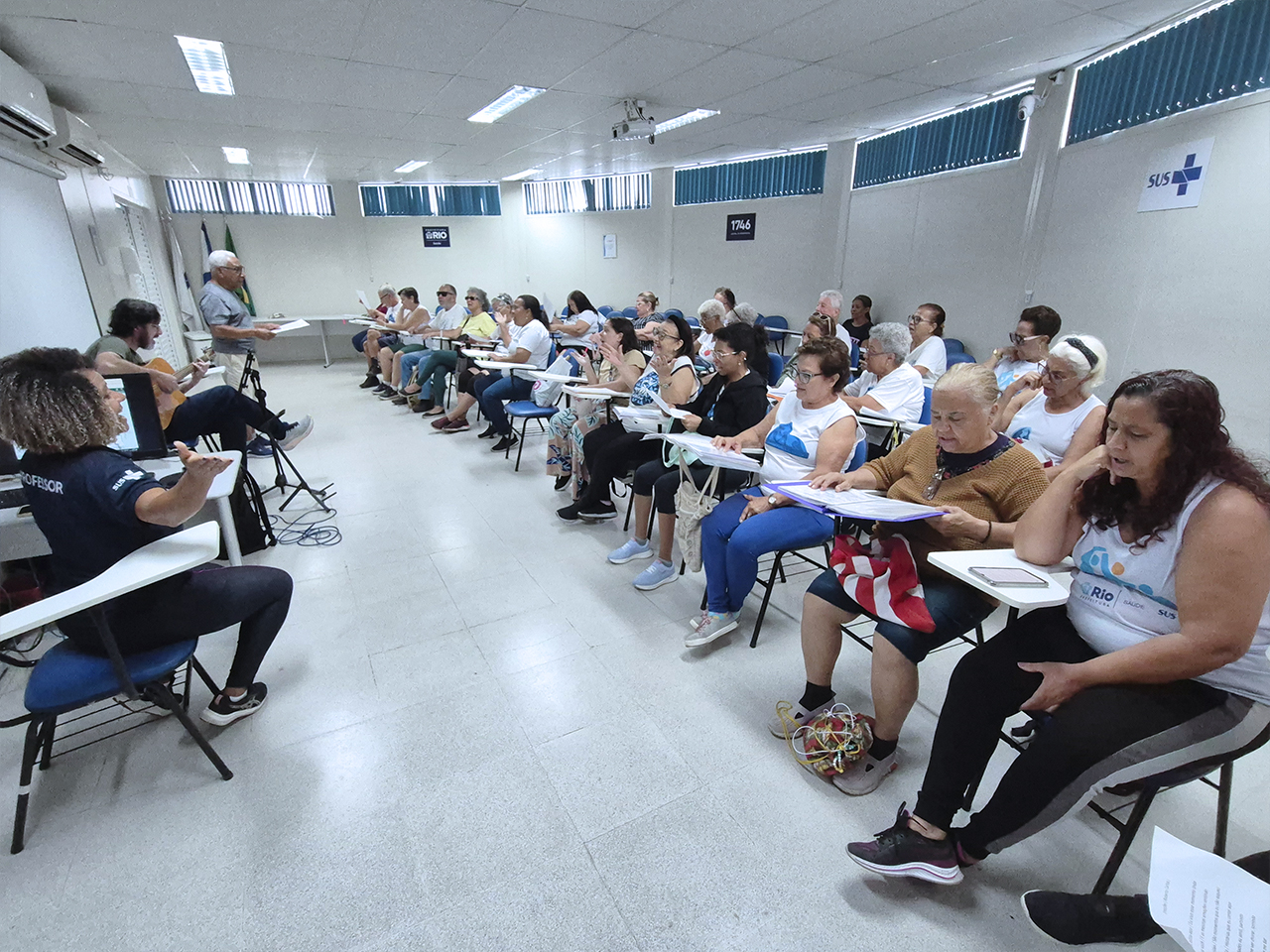 Guiados pelo instrutor Arthur Azevedo, os presentes soltaram suas vozes em harmonias envolventes, criando um ambiente de acolhimento e alegria coletiva. A música foi acompanhada por risadas e expressões de contentamento, refletindo o efeito positivo da atividade sobre todos os envolvidos.