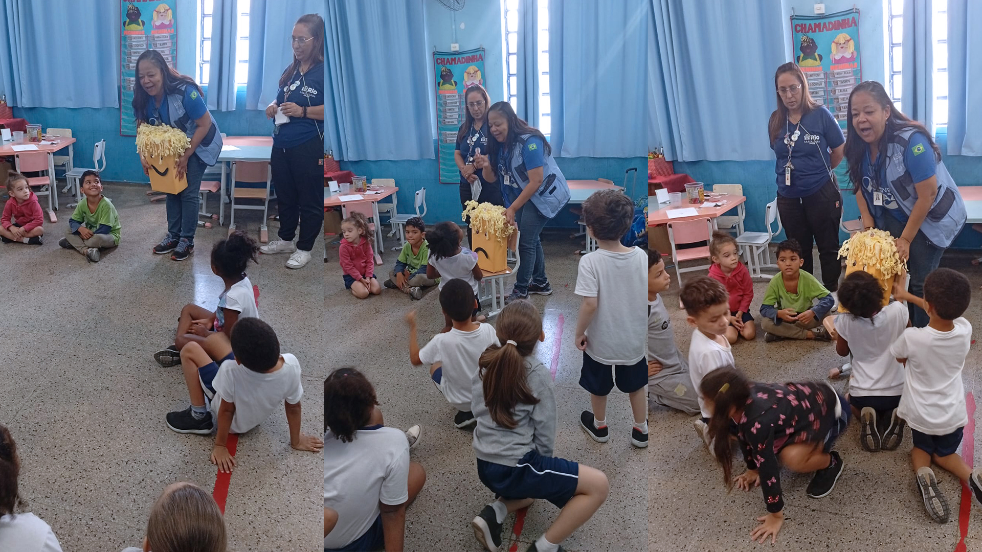 Já na Escola Municipal Charles Peguy, foi apresentado um teatro lúdico voltado ao tema da pediculose. De forma leve e educativa, os profissionais explicaram às crianças como ocorre a transmissão dos piolhos, quais sinais devem ser observados e quais medidas ajudam na prevenção e no controle do problema. A abordagem teatral facilitou o aprendizado e incentivou os alunos a adotarem cuidados essenciais com a higiene.