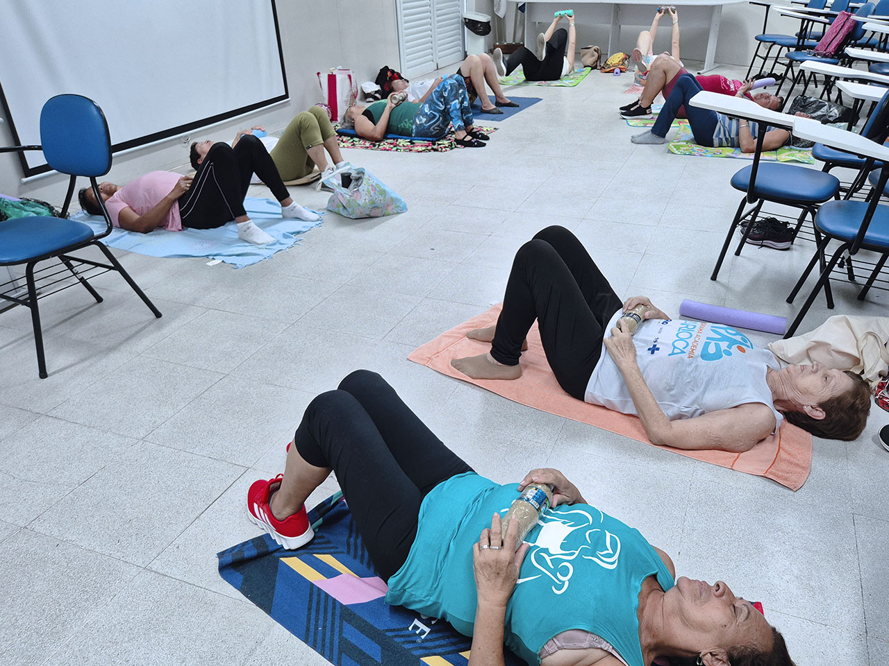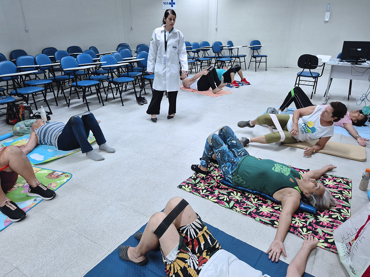 No dia 14 de janeiro de 2026, a fisioterapeuta Vanessa Barros, integrante da equipe E-Multi da Clínica da Família Medalhista Olímpico Arthur Zanetti, conduziu mais uma edição do Grupo de Assoalho Pélvico no auditório da OTICS Campo Grande. A atividade, realizada semanalmente nas manhãs de quarta-feira, é voltada à prática de exercícios direcionados ao fortalecimento dessa importante região do corpo.