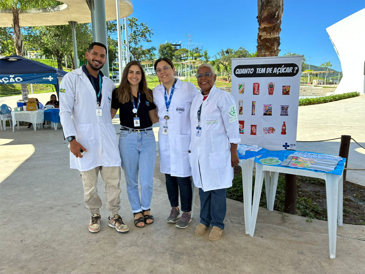 Como estratégia educativa complementar, foi aplicada uma dinâmica demonstrando as quantidades de açúcar presentes em alimentos ultraprocessados, facilitando a compreensão dos riscos associados ao consumo excessivo desses produtos. A ação contou com a participação dos nutricionistas Patrick Aguiar, Raissa Balthar e Mariana Scharf, além da estagiária Luciana Guttierres, e teve como objetivo promover a conscientização da população, estimular hábitos alimentares saudáveis, prevenir agravos relacionados às doenças crônicas e fortalecer as ações de promoção da saúde no território.