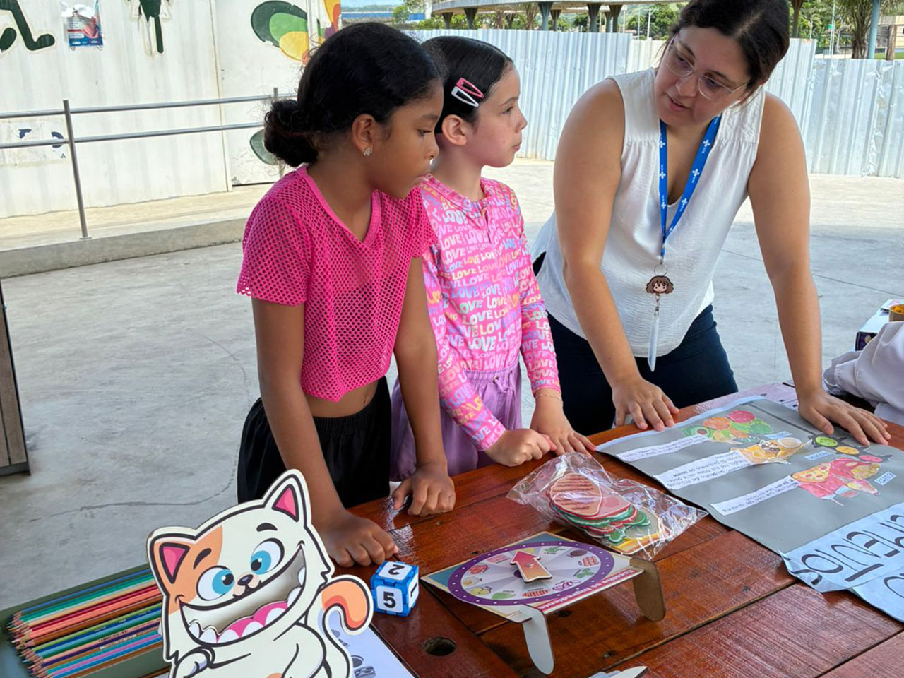 Já para o público infantil, especialmente crianças com TEA e seletividade alimentar, foram desenvolvidas atividades lúdicas e inclusivas, como o jogo “Gato Comilão”, que estimulou o reconhecimento e a experimentação dos alimentos de maneira respeitosa e sem imposição. Também foi realizada a atividade “Monte seu Sanduíche”, incentivando escolhas mais saudáveis e a construção de combinações alimentares equilibradas de forma prática e educativa.