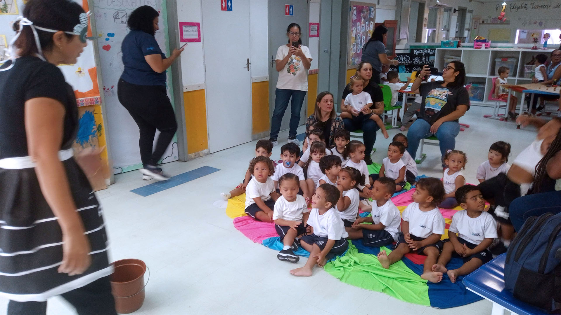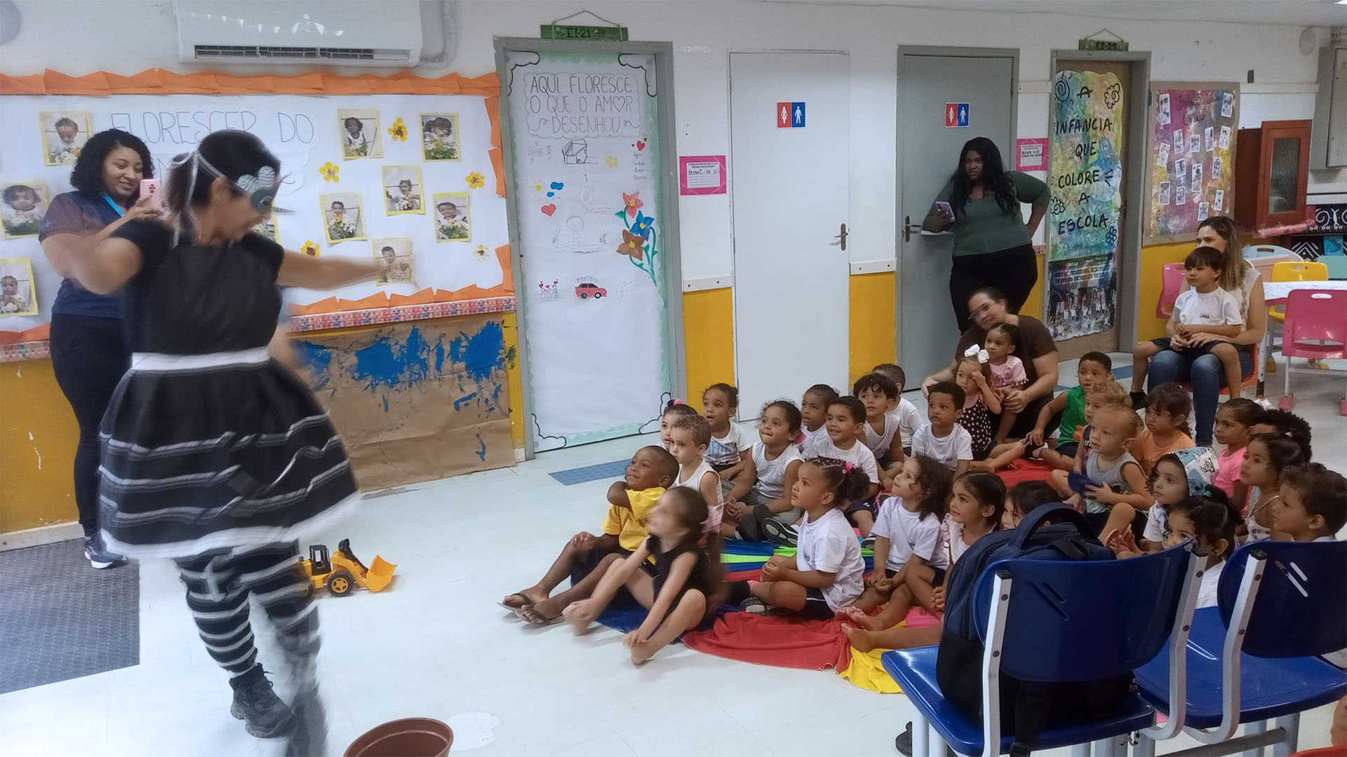 Como estratégia pedagógica, a Técnica em Saúde Bucal se caracterizou como mosquito, realizando uma encenação que despertou a atenção e o interesse dos pequenos. A dinâmica facilitou a compreensão sobre os cuidados necessários para evitar a proliferação do mosquito, reforçando atitudes simples de prevenção no dia a dia.