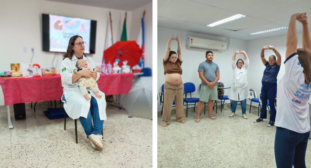 Durante o encontro, foram desenvolvidas práticas integrativas e orientações voltadas para o bem-estar físico e emocional das participantes. Entre as atividades realizadas esteve a prática do Ba Duan Jin, com exercícios e técnicas de respiração voltadas para o equilíbrio físico e mental. Também foi apresentada a Shantala, uma massagem relaxante para bebês que fortalece o vínculo entre mãe e filho e contribui para o desenvolvimento saudável da criança.
